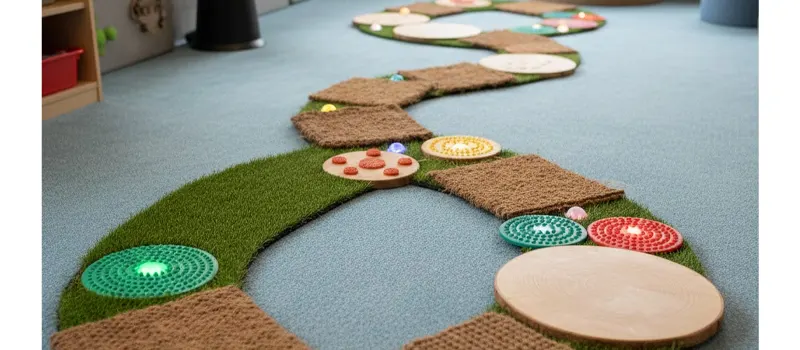 Textured sensory paths are engaging floor designs made from a variety of tactile materials that guide students through a sequence of movement-based tasks. These paths may incorporate rubber tiles, foam shapes, sandpaper patches, and even artificial turf to create a multi-sensory walking experience.