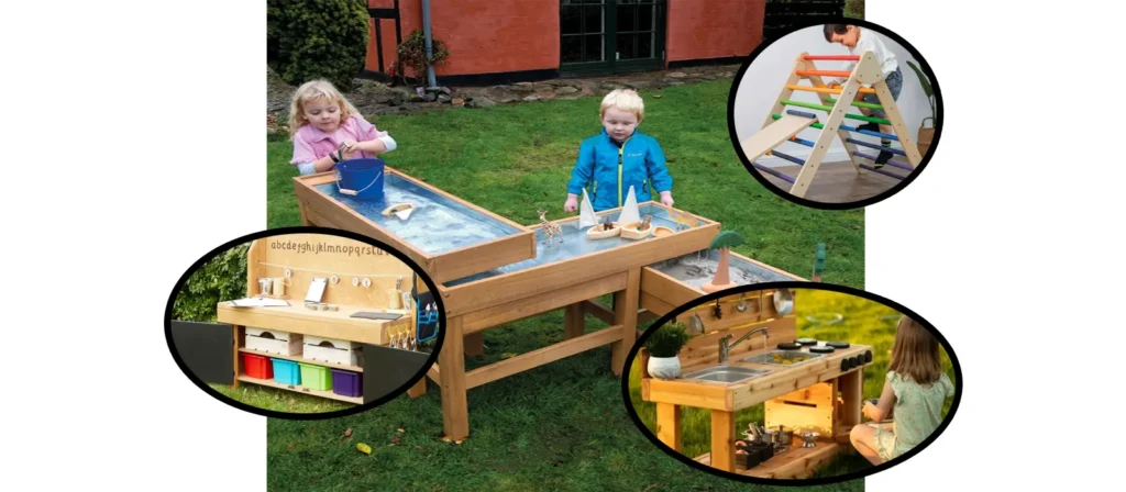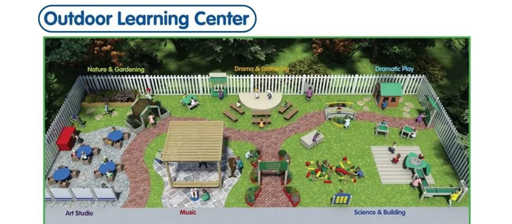 Outdoor kitchens, puppet theaters, and themed play stations allow for creative storytelling and cooperative play. These tools support social development and emotional expression. They also play a key role in the outdoor preschool curriculum, blending free play with skill-building opportunities.