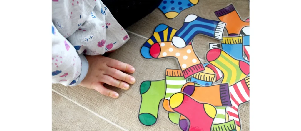 Because it uses real objects from daily life, sock matching feels familiar and meaningful to children. It requires no special materials, making it easy to repeat regularly in both home and classroom settings. With consistent practice, children become more confident in spotting visual similarities and differences, an essential step in developing strong visual processing skills.